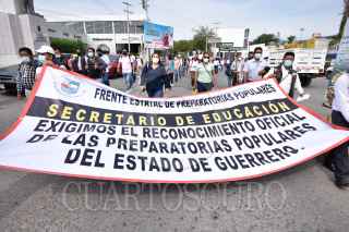 CHILPANCINGO, CIUDAD DE MÉXICO, 01DICIEMBRE2020.- Profesores de preparatorias populares marcharon en Chilpancingo para exigir el pago de salarios para más de mil 200 docentes y el reconocimiento oficial de los 135 planteles ubicados en todo el estado de Guerrero. Explicaron que, por muchos años, han solicitado el reconocimiento oficial para las 135 preparatorias, pero que hasta la fecha no han tenido respuesta favorable a la petición y, debido a eso, no tienen certeza laboral. Detalló que hay un presupuesto de 68 millones de pesos para el pago de salarios de los profesores de todas las preparatorias en el estado, pero que por la falta de oficialización del sistema educativo en el que se encuentran, no están percibiendo el salario que deberían recibir por su trabajo. FOTO: DASSAEV TÉLLEZ ADAME/ CUARTOSCURO.COM