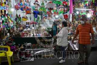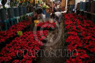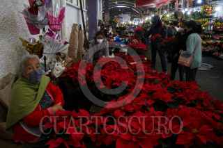 CIUDAD DE MÉXICO, 01DICIEMBRE2020. - El trabajo de artesanos, campesinos, floricultores, llega al mercado Jamaica con la tradicional Noche buena, piñatas, materia prima para la cena navideña y adornos para el pino incluyendo la venta de esta. Floricultores declararon que en el país se piensa vender al rededor de 125 millones de Noche Buenas. FOTO: ANDREA MURCIA /CUARTOSCURO.COM