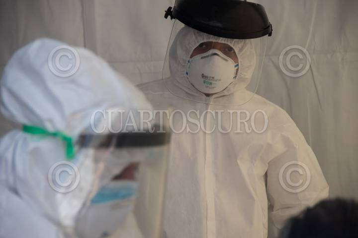 CIUDAD DE MÉXICO 03DICIEMBRE2020.- Decenas de personas acudieron al Kiosko Covid 19 en la salida del Metro Pino Suárez. Desde temprana hora se realizan pruebas y antes de llegar al trabajo gente del estado de México hace fila para realizarse este test. FOTO: VICTORIA VALTIERRA/CUARTOSCURO.COM