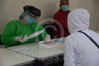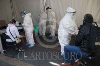 CIUDAD DE MÉXICO 03DICIEMBRE2020.- Decenas de personas acudieron al Kiosko Covid 19 en la salida del Metro Pino Suárez. Desde temprana hora se realizan pruebas y antes de llegar al trabajo gente del estado de México hace fila para realizarse este test. FOTO: VICTORIA VALTIERRA/CUARTOSCURO.COM