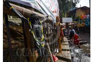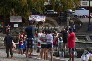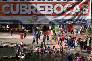 OCUILAN, ESTADO DE MÉXICO, 03DICIEMBRE2020.- Peregrinos de Cuautepec en la delegación Gustavo A. Madero acudieron al Ahuehuete de Chalma a dar gracias y a pedir por un buen año en el trabajo y salud para todas sus familias, recorren el santuario y a visitar la virgen monumental que mide 33 metros de altura y la cual se encuentra cerrada desde el 23 de marzo ante la contingencia por COVID-19, y que el próximo 12 de diciembre día en que se celebra a la Virgen de Guadalupe permanecerá cerrado a los peregrinos para evitar algún contagio; al menos 30 vochos forman parte de esta peregrinación, y disfrutaron un rato en el manantial que nace en el Ahuehuete, los letreros de “usar cubrebocas” se pueden observar en distintos puntos del lugar. FOTO: CRISANTA ESPINOSA AGUILAR /CUARTOSCURO.COM