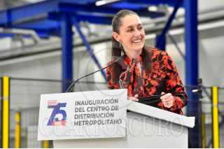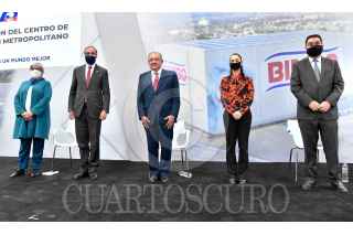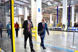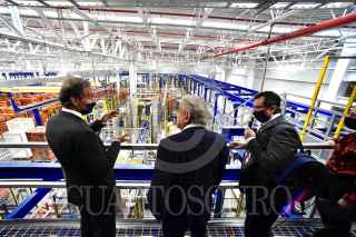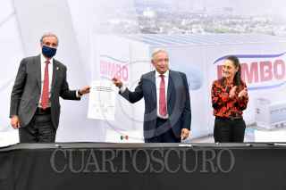 CIUDAD DE MÉXICO, 03DICIEMBRE2020.- Andrés Manuel López Obrador, Presidente Constitucional de los Estados Unidos Mexicanos, y Daniel Servitje Montull, director general de Grupo Bimbo y presidente del Consejo de Administración; encabezaron la inauguración del Centro de Distribución Metropolitano Bimbo. Lo acompañan Graciela Márquez Colín, secretaria de Economía; Claudia Sheinbaum Pardo, jefa de Gobierno de la Ciudad de México y Vidal Llerenas Morales, alcalde de Azcapotzalco. FOTO: PRESIDENCIA/CUARTOSCURO.COM