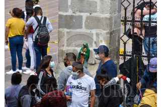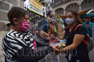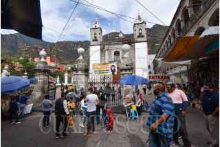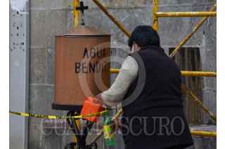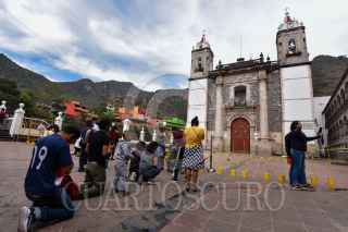 OCUILAN, ESTADO DE MÉXICO, 03DICIEMBRE2020.- Por la contingencia por COVID-19 el Santuario del Señor de Chalma continúa cerrado pero algunos visitantes llegan a rezar a las puertas de la iglesia y se llevan agua bendita, algunos llegan con imágenes de la Virgen de Guadalupe que el 12 de diciembre se festejará su día; el uso de cubrebocas es obligatorio. FOTO: CRISANTA ESPINOSA AGUILAR /CUARTOSCURO.COM