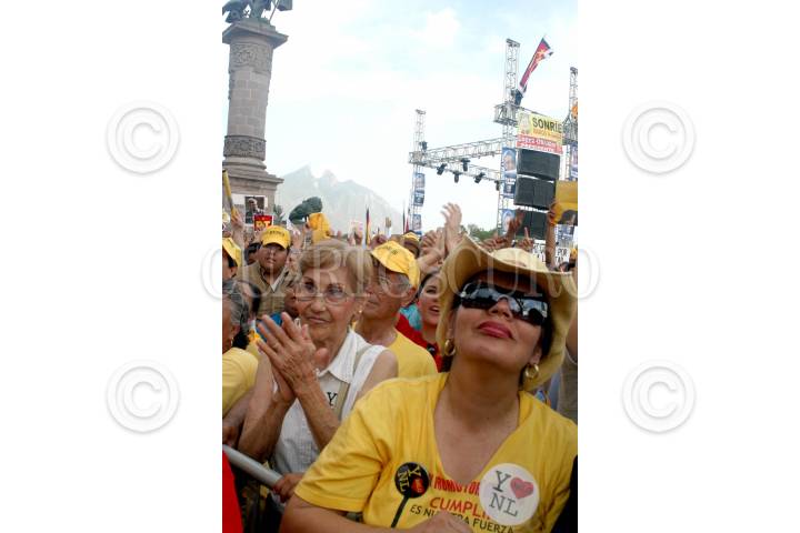 MONTERREY, NUEVO LEÓN 19JUNIO2006.- Andrés Manuel Lòpez Obrador, candidato de la Coaliciòn por el Bien de Todos PRD-PT-Convergencia, realizò un mitin politico en la explanada de los heroes, en la macroplaza, ante cientos de simpatizantes, a los calues saludo y dirigio un discurso, en su cierre de campaña en el Norte del Paìs. FOTO: Pedro Kristian Lòpez/CUARTOSCURO.COM