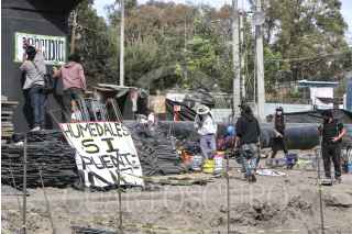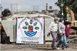 CIUDAD DE MÉXICO, 03DICIEMBRE2020.-Integrantes de diversos colectivos encabezados por el Comité Nacional de Humedales, tomaron las inmediaciones de la construcción del puente vehicular Periférico-Cuemanco, esto bajo el argumento de que el puente afectará directamente el Área Natural Protegida y los humedales que ahí existen. FOTO: ROGELIO MORALES /CUARTOSCURO.COM