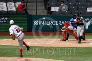 CIUDAD DE MÉXICO, 04DICIEMBRE2020.- Con gran salida del abridor Víctor Buelna del equipo Alfredo Ortiz, la novena representante de los Guerreros de Oaxaca se impuso a Daniel Fernández por pizarra de 10 carreras a cero, Buelna llegó a tres triunfos después de lanzar seis entradas completas con pelota de dos hits, regaló dos bases y ponchó a siete rivales, la derrota se la llevó el abridor escarlata Kevin Ribon (0-2). Por la ofensiva del Team Ortiz destacó la actuación de Rigoberto Terrazas (2-2, 2 CP, 2 CA) y Yael Romero (3-3, 4 CP, 2 CA). FOTO: DIABLOS ROJOS/ENRIQUE GUTIERREZ/CUARTOSCURO.COM