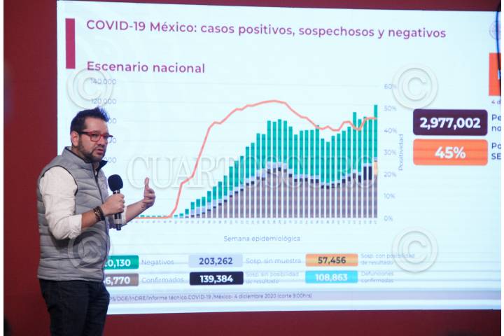 CIUDAD DE MÉXICO, 04DICIEMBRE2020. - Hugo López-Gatell Ramírez, subsecretario de Prevención y Promoción de la Salud; Ricardo Cortés, Olivia López Arellano, Secretaría de Salud de la Ciudad, durante la conferencia informe COVID-19 en Palacio Nacional FOTO:ANDREA MURCIA /CUARTOSCURO.COM