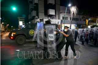 TUXTLA GUTIÉRREZ, CHIAPAS, 04DICIEMBRE2020.- Autoridades estatales desalojaron a estudiantes normalistas de la Escuela Normal Rural Mactumatza y a desplazados forzados del ejido Puebla, Chenalhó, quienes mantenían bloqueados los accesos a Palacio de Gobierno. FOTO: ESPECIAL /CUARTOSCURO.COM