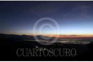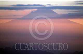 OCUILAN DE ARTEAGA, ESTADO DE MÉXICO, 06DICIEMBRE2020.- Los primeros rayos del sol iluminan la capital de Morelos y al volcán Popocatépetl, la imagen tomada desde los bosques de este municipio. FOTO: MARGARITO PÉREZ RETANA/CUARTOSCURO.COM