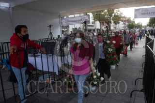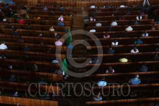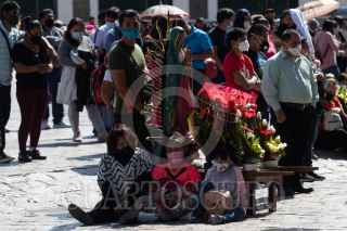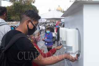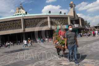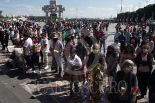 CIUDAD DE MÉXICO, 06DICIEMBRE2020.- Cientos de feligreses acudieron a la Eucaristía Dominical en la Basílica de Guadalupe, la cual recibe el 30% de capacidad debido a la pandemia del Covid-19. Antes de ingresar, los capitalinos pasan por varios filtros de medidas sanitarias como la toma de temperatura y uso de gel antibacterial para evitar más propagación de contagios. FOTO: GRACIELA LÓPEZ /CUARTOSCURO.COM