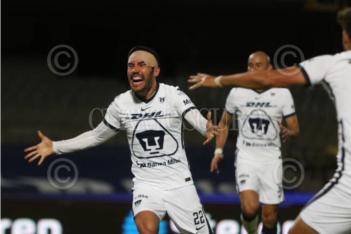 CIUDAD DE MÉXICO, 06DICIEMBRE2020.- Los Pumas se enfrentan al Cruz Azul en el juego de vuelta de las semifinales del torneo Guard1anes de la Liga MX. A los pocos minutos Juan Ignacio Dinenno anotó por los universitarios, con esta el global esta (4-1). FOTO: MOISÉS PABLO/CUARTOSCURO.COM