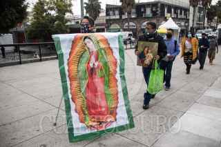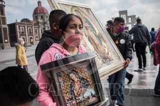 CIUDAD DE MÉXICO, 07DICIEMBRE2020.- Fieles guadalupanos acudieron a la Basílica de Guadalupe para visitar a la llamada "Morenita del Tepeyac", quien este año celebra su 489º aniversario de su aparición al indígena Juan Diego en el Cerro del Tepeyac. Los feligreses están adelantando su vista ya que el templo permanecerá del 10 al 13 de diciembre para evitar aglomeraciones de personas, ante un repunte de la pandemia de Covid-19 en la Ciudad de México. FOTO: VICTORIA VALTIERRA/CUARTOSCURO.COM