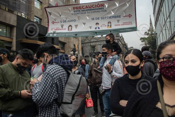 CIUDAD DE MÉXICO 07DICIEMBRE2020.- Pese al frío y a las recomendaciones de quedarse en casa, por la Contingencia Sanitaria; capitalinos acuden al centro a realizar sus compras de diciembre. FOTO: VICTORIA VALTERRA/CUARTOSCURO.COM