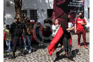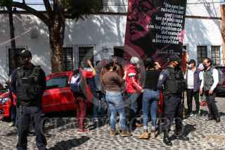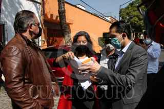 CIUDAD DE MÉXICO, 08DICIEMBRE2020.- Un grupo de personas se presentaron la mañana de este martes en la sede alterna de la agencia Notimex, ubicado en África 15 de la alcaldía Coyoacán, acompañadas del supuesto dueño, exigieron a los trabajadores el levantamiento del campamento y retiro de mantas del predio. Al lugar llegaron elementos de la policía capitalina para resguardar la zona y representantes de la secretaría de gobierno para mediar la situación. FOTO: ROGELIO MORALES /CUARTOSCURO.COM