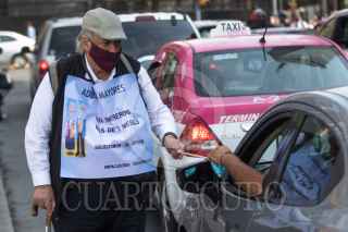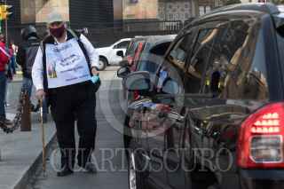 CIUDAD DE MÉXICO, 08DICIEMBRE2020.- Personas de la tercera edad que trabajaban como empaquetadores en centros comerciales piden ayuda económica en avenida Juárez, ya que comentan en su anteriores centros de trabajo no los admiten debido a la pandemia de Covid-19, ya que son población vulnerable. FOTO: MOISÉS PABLO/CUARTOSCURO.COM