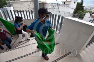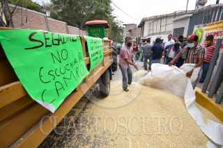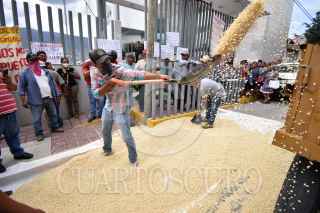 CHILPANCINGO, GUERRERO, 08DICIEMBRE2020.- Productores y campesinos de la comunidad de Atliaca, municipio de Tixtla de Guerrero y de la Unión Nacional de Trabajadores Agrícolas (UNTA), protestaron en las oficinas de la Secretaría del Bienestar en Chilpancingo regando cientos de kilos de maíz para exigir el pago del programa “Producción para el Bienestar”. Marco Antonio Reyes Campos, dirigente estatal de esta organización en Guerrero, dio a conocer que desde hace más de un mes han estado buscando a personal de SEGALMEX y del Bienestar para denunciar las irregularidades en los programas “Precios de garantía” y “Producción para el Bienestar”. Detalló que son más de mil productores los que solamente han recibido las tarjetas, pero no les ha pagado, y explicó que al revisar el listado, los productos aparecen como ya pagados, lo cual calificaron como acciones irregulares y de corrupción. Durante la protesta, los más de 40 productores y campesinos vaciaron casi media tonelada de granos de maíz en la entrada principal de la dependencia federal y al interior de las oficinas donde despacha el delegado federal, Iván Hernández Díaz. Sin embargo, recalcaron que el grueso de los productores alrededor de 200 mil, no han podido vender sus cosechas a los operadores del Programa de Precios de Garantía de Seguridad Alimentaria Mexicana (SEGALMEX), quien ha aplazado la compra desde el 16 de noviembre. FOTO: DASSAEV TÉLLEZ ADAME/CUARTOSCURO.COM