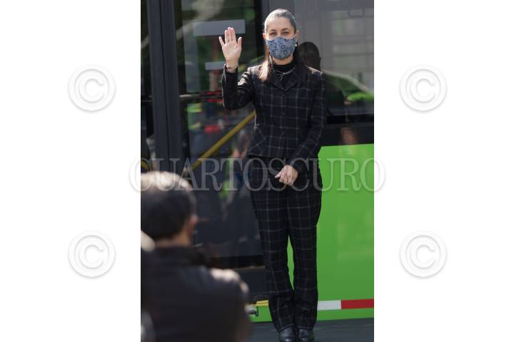CIUDAD DE MÉXICO 09DICIEMBRE2020.- Claudia Sheinbaum Pardo, Jefa del Gobierno de la Ciudad, acompañada de el alcalde de Azcapotzalco, Vidal Llerena; y de Andrés Lajous de Movilidad de la Capital, en la entrega de una flotilla de autobuses RTP. FOTO: VICTORIA VALTERRA/CUARTOSCURO.COM