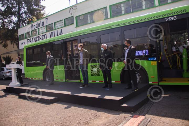 CIUDAD DE MÉXICO 09DICIEMBRE2020.- Claudia Sheinbaum Pardo, Jefa del Gobierno de la Ciudad, acompañada de el alcalde de Azcapotzalco, Vidal Llerena; y de Andrés Lajous de Movilidad de la Capital, en la entrega de una flotilla de autobuses RTP. FOTO: VICTORIA VALTERRA/CUARTOSCURO.COM