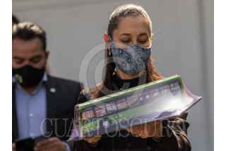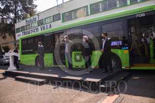 CIUDAD DE MÉXICO 09DICIEMBRE2020.- Claudia Sheinbaum Pardo, Jefa del Gobierno de la Ciudad, acompañada de el alcalde de Azcapotzalco, Vidal Llerena; y de Andrés Lajous de Movilidad de la Capital, en la entrega de una flotilla de autobuses RTP. FOTO: VICTORIA VALTERRA/CUARTOSCURO.COM