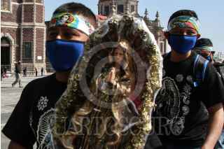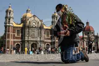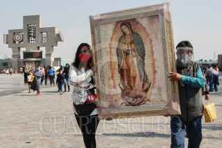 CIUDAD DE MÉXICO, 09DICIEMBRE2020.- Decenas de fieles acudieron a la Basílica de Guadalupe, esto en el último día en el que permanecerá abierta, luego de que las autoridades del recinto y del gobierno anunciaran el cierre del templo durante los festejos de la Virgen de Guadalupe y han pedido a los feligreses abstenerse de acudir en estas fechas. FOTO: ROGELIO MORALES /CUARTOSCURO.COM