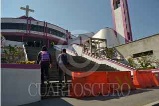 XALAPA, VERACRUZ, 09DICIEMBRE2020.- Ante la llegada de peregrinos a la Basílica Menor de Xalapa, autoridades de Protección Civil implementaron un operativo para controlar su paso y evitar aglomeración de personas a fin de prevenir contagios de COVID-19. FOTO: YERENIA ROLÓN/CUARTOSCURO.COM