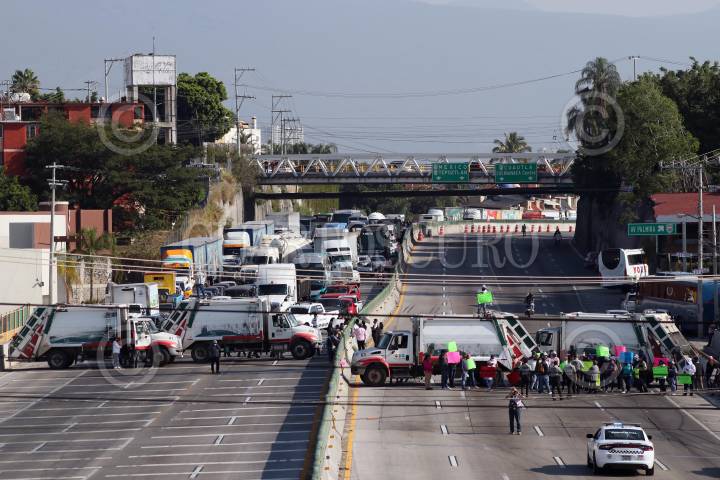 CUERNAVACA, MORELOS, 10DICIEMBRE2020.- Trabajadores del municipio de Puente de Ixtla bloquean el paso exprés en la entrada sur a la capital. El ayuntamiento hace días se declaró en quiebra y ya se notan las consecuencias. FOTO: MARGARITO PÉREZ RETANA/CUARTOSCURO.COM