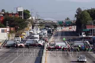 CUERNAVACA, MORELOS, 10DICIEMBRE2020.- Trabajadores del municipio de Puente de Ixtla bloquean el paso exprés en la entrada sur a la capital. El ayuntamiento hace días se declaró en quiebra y ya se notan las consecuencias. FOTO: MARGARITO PÉREZ RETANA/CUARTOSCURO.COM