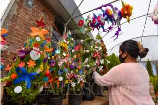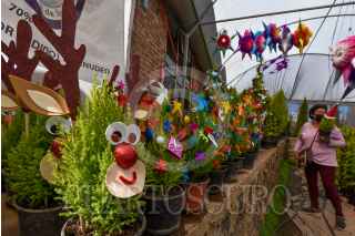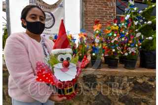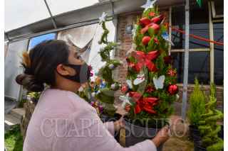 ATLACOMULCO, ESTADO DE MÉXICO, 10DICIEMBRE2020.- Ana Flor Hernández y su familia llevan muchos años dedicándose a la producción de plantas de ornato de San Lorenzo Tlacotepec en Atlacomulco, sobre todo a la producción de árboles cedros limón los cuales adornan de forma peculiar para las fiestas navideñas, en forma de Santa Claus y renos o con esferas y pequeñas figuras navideñas, los precios van desde los 35 hasta los 200 pesos; durante esta contingencia por COVID-19 se preocuparon por las bajas ventas, pero los visitantes no han dejado de ir y consumidor sus plantas, sobre todo los árboles navideños que ofrecen para los festejos de estas fechas. FOTO: CRISANTA ESPINOSA AGUILAR /CUARTOSCURO.COM