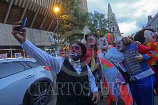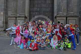 GUADALAJARA, JALISCO, 10DICIEMBRE2018.- Decenas de Payasos desfilaron por las principales calles del centro de la ciudad, esto para conmemorar su día, posteriormente se oficio una misa en el Santuario de Guadalupe. FOTO: FERNANDO CARRANZA GARCIA /CUARTOSCURO.COM