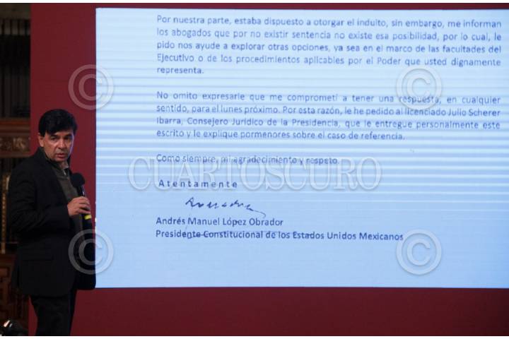 CIUDAD DE MÉXICO, 11DICIEMBRE2020.- Andrés Manuel López Obrador, presidente de México, acompañado de Gisela Lara Saldaña, titular de la Unidad del Programa IMSS-Bienestar; Galia Borja Gómez, tesorera de la Federación; Margarita González Sarabia, directora general de la Lotería Nacional para la Asistencia Pública; Jorge Mendoza Sánchez, director general de Banobras y Ernesto Prieto Ortega, director general del Instituto para Devolver al Pueblo lo Robado (Indep), durante la conferencia matutina en Palacio Nacional. FOTO: ANDREA MURCIA /CUARTOSCURO.COM