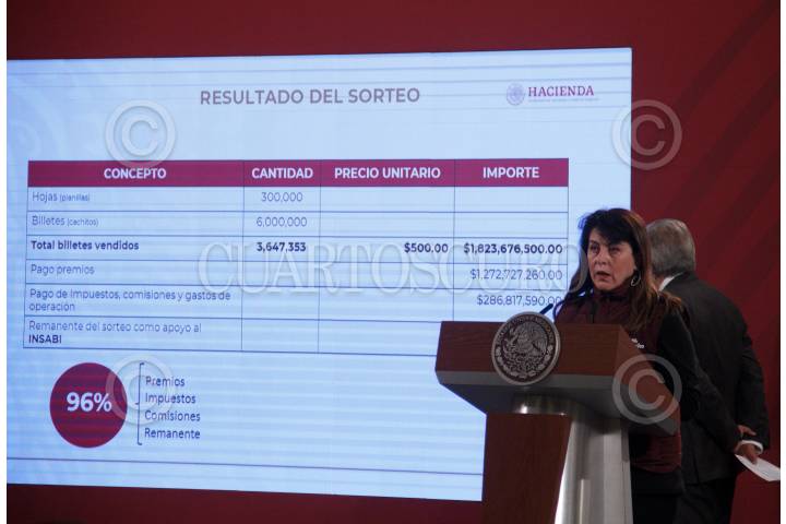 CIUDAD DE MÉXICO, 11DICIEMBRE2020.- Andrés Manuel López Obrador, presidente de México, acompañado de Gisela Lara Saldaña, titular de la Unidad del Programa IMSS-Bienestar; Galia Borja Gómez, tesorera de la Federación; Margarita González Sarabia, directora general de la Lotería Nacional para la Asistencia Pública; Jorge Mendoza Sánchez, director general de Banobras y Ernesto Prieto Ortega, director general del Instituto para Devolver al Pueblo lo Robado (Indep), durante la conferencia matutina en Palacio Nacional. FOTO: ANDREA MURCIA /CUARTOSCURO.COM