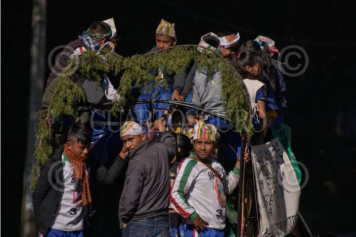 SAN CRISTÓBAL DE LAS CASAS, CHIAPAS, 11DICIEMBRE2020.- Antorchistas de diferentes comunidades del estado Chiapaneco realizan su tradicional peregrinaje en honor a la Virgen de Guadalupe cercano al día de su celebración, recorriendo kilómetros sobre las carreteras se acercan a las diferentes iglesias donde se encuentra la imagen de la virgen María. FOTO: ISABEL MATEOS /CUARTOSCURO.COM