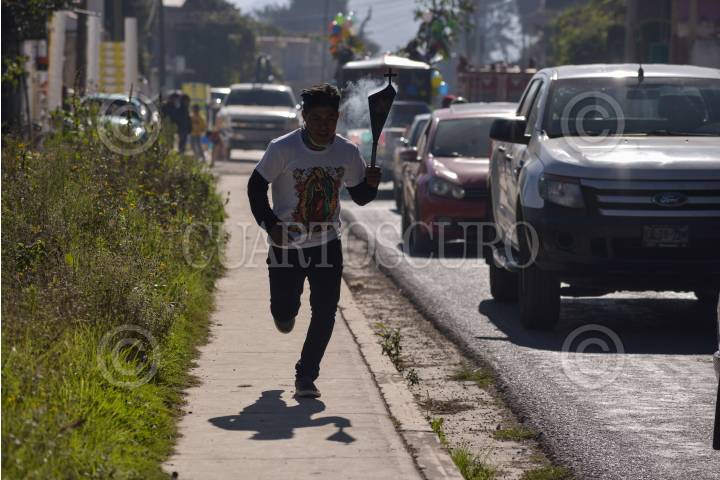 SAN CRISTÓBAL DE LAS CASAS, CHIAPAS, 11DICIEMBRE2020.- Antorchistas de diferentes comunidades del estado Chiapaneco realizan su tradicional peregrinaje en honor a la Virgen de Guadalupe cercano al día de su celebración, recorriendo kilómetros sobre las carreteras se acercan a las diferentes iglesias donde se encuentra la imagen de la virgen María. FOTO: ISABEL MATEOS /CUARTOSCURO.COM