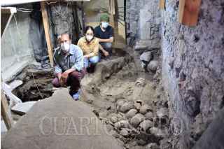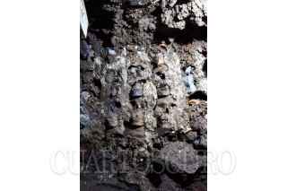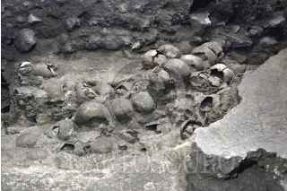 CIUDAD DE MÉXICO, 11DICIEMBRE2020.- Arqueólogos localizaron el costado este y la fachada externa de la torre de cráneos del Huei Tzompantli de Tenochtitlan la cual se remonta por lo menos, a la época del gobierno del tlatoani Ahuízotl, entre 1486 y 1502. En la sección este de la torre se han visualizado, superficialmente, 119 cráneos humanos, mismos que se suman a los 484 identificados anteriormente. FOTO: MELITÓN TAPIA (INAH)/CUARTOSCURO.COM