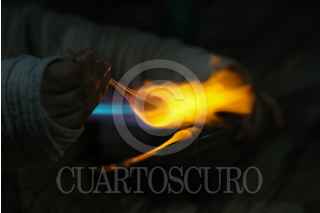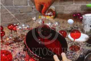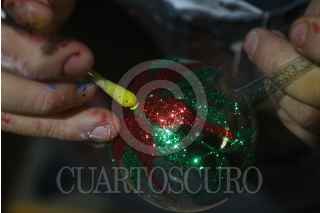 CIUDAD DE MÉXICO, 11DICIEMBRE2020.- Josefina Aguilar y Javier Camargo son fabricantes artesanales en vidrio soplado con una experiencia de 20 años. La empresa JJL Esferas Navideñas se dedica a realizar seis tamaños de esferas de vidrio artesanales, para su elaboración se requieren tubos de vidrio, pintura, diamantina y casquillos. El procedimiento cuanta con seis pasos: el primero se le llama globeo, el cual es el soplado de vidrio y dura aproximadamente 40 segundos, posteriormente se pintan y se decoran, se dejan secar sobre aserrín y se corta el exceso de tubo para colocar los casquillos; finalmente se empacan para su venta de mayoreo y menudeo. FOTO: GRACIELA LÓPEZ /CUARTOSCURO.COM
