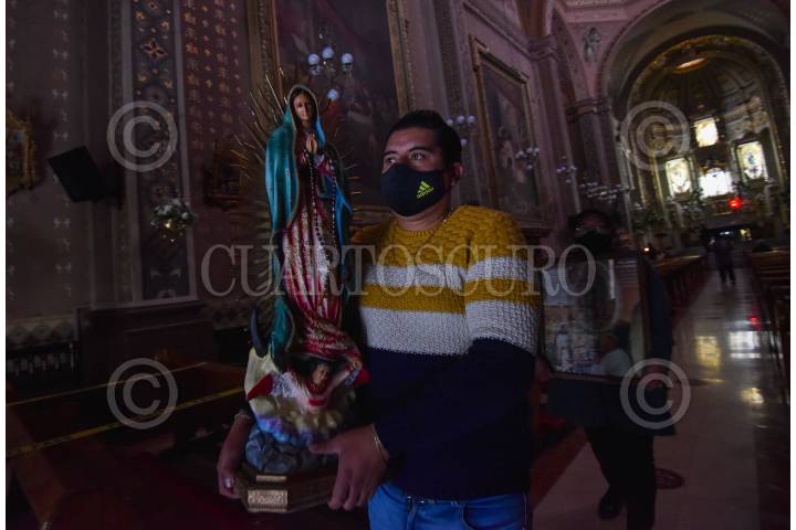 TOLUCA, ESTADO DE MÉXICO, 11DICIEMBRE2020.- Fieles católicos acudieron a la iglesia de la Santa Veracruz en Toluca a escuchar misa en honor a la Virgen de Guadalupe, ante la prohibición de festejos por la contingencia por COVID-19, se invita a los creyentes a permanecer en sus casas y no realizar reuniones masivas con motivo de los festejos de la Virgen morena. FOTO: CRISANTA ESPINOSA AGUILAR /CUARTOSCURO.COM