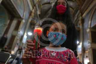 GUADALAJARA, JALISCO, 11DICIEMBRE2020.- A pesar de las complicaciones y restricciones que a dejado la pandemia sanitaria del Covid-19, fieles católicos desde niños, hasta adultos mayores se dan cita al Santuario de Guadalupe para agradecer favores cumplidos durante el año, llevar ofrendas, hacer oraciones y cantar alabanzas a la Virgen Morena, esto tras el festejo de los 489 años de esta tradición del pueblo de México. FOTO: FERNANDO CARRANZA GARCIA / CUARTOSCURO.COM