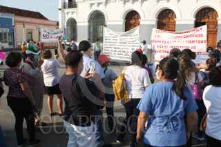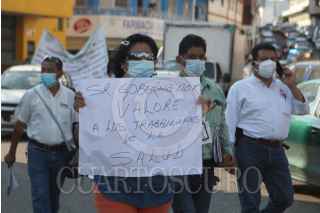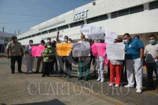 VILLAHERMOSA, TABASCO, 11DICIEMBRE2020.- Enfermeros, doctores, trabajadores sociales, entre más especialistas de la medicina realizaron manifestación y paro de labores en las inmediaciones del ISSET. Acusan al director de dicha instancia, Dr.Fernando Canabal como responsable que les descontarán impuestos de sus aguinaldos, así mismo mencionó Esmeralda Sánchez Merino, secretaria general del Sindicato Independiente Democratico del ISSET que no continuarán permitiendo violencia laboral que atente contra sus derechos del trabajo. FOTO: CARLOS CABAL OBRADOR/CUARTOSCURO.COM