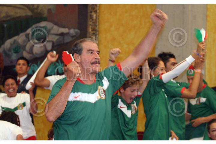 MÉXICO D.F. 21JUNIO2006.- Marta Sahagun esposa del presidente Vicente Fox, junto con el clavadista Romel Pacheco, lamentan la falla del penalti, durante la transmisión del juego de la selección nacional contra de Portugal. FOTO: Guillermo Perea/CUARTOSCURO.COM