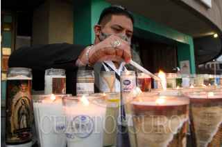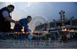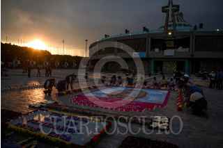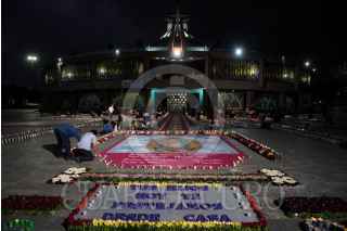 CIUDAD DE MÉXICO, 11DICIEMBRE2020.- Como parte de la conmemoración del aniversario 488 de la aparición de la Virgen de Guadalupe en el cerro del Tepeyac, fue instalado un tapete monumental de flores y 1500 veladoras con oraciones en representación de los peregrinos ausentes debido a que las instalaciones se encuentran cerradas al público debido a la emergencia sanitaria por covid-19. FOTO: MARIO JASSO/CUARTOSCURO.COM