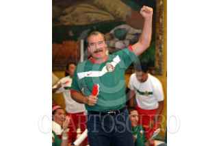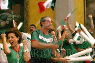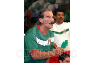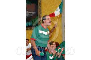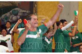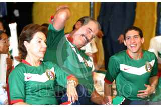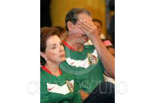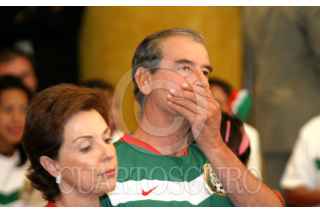 MÉXICO D.F. 21JUNIO2006.- Marta Sahagun esposa del presidente Vicente Fox, junto con el clavadista Romel Pacheco, lamentan la falla del penalti, durante la transmisión del juego de la selección nacional contra de Portugal. FOTO: Guillermo Perea/CUARTOSCURO.COM