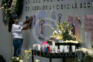 CIUDAD DE MÉXICO, 12DICIEMBRE2020.- Alumnas, alumnos, compañeros de trabajo y comunidad estudiantil del Instituto Politécnico Nacional (IPN) acudieron a las inmediaciones de la Unidad Profesional Interdisciplinaria de Ingeniería y Ciencias Sociales y Administrativas (UPIICSA) para rendir homenaje y exigir justicia por el feminicidio de la profesora Sandra Ibeth Ochoa García, cuyo cuerpo fue encontrado el pasado jueves con signos de violencia en el municipio de Chalco, Estado de México. Alumnas en su mayoría leyeron mensajes de luto, apoyo y cariño a la académica de 42 años, quien había sido reportada como desaparecida desde el pasado 8 de diciembre. Los asistentes pidieron a las autoridades del Politécnico y de justicia que esclarezcan los hechos y den con los responsables. FOTO: GALO CAÑAS/CUARTOSCURO.COM
