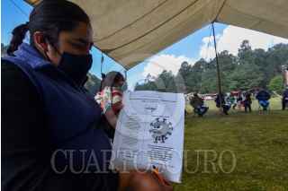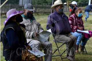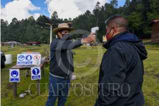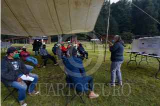 TEMASCALTEPEC, ESTADO DE MÉXICO, 12DICIEMBRE2020.- Ejidatarios del Santuario de la Mariposa Monarca de Piedra Herrada reciben capacitación por parte de personal del Centro Latinoamericano de Formación y Capacitación para Guías en Turismo S. C., por parte de Comisión Nacional de Áreas Naturales Protegidas (CONANP) en el contexto de COVID-19, cómo llevar a cabo todas las medidas sanitarias necesarias para poder recibir a los pocos turistas que han empezado a llegar a ver la mariposa monarca, cada año reciben alrededor de 20 mil turistas nacionales e internacionales y en esta ocasión ante la pandemia por coronavirus los visitantes han bajado considerablemente, para muchos ejidatarios es su único ingreso económico. FOTO: CRISANTA ESPINOSA AGUILAR /CUARTOSCURO.COM