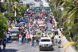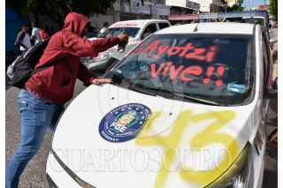 CHILPANCINGO, GUERRERO, 12DICIEMBRE2020. - Estudiantes de la Escuela Normal Rural 'Raúl Isidro Burgos' de Ayotzinapa, junto con los Padres y Madres de los 43, delegaciones de las 17 normales que integran la Federación de Estudiantes Campesinos Socialistas de México (FECSM), conmemoraron los 9 años del asesinado de Jorge Alexis Herrera Pino y Gabriel Echeverria de Jesús, quienes fueran asesinados por policias ministeriales en el punto conocido como 'El Parador del Marqués', en el año 2011. Durante el recorrido, donde estuvieron presentes los familiares de ambos estudiantes, los estudiantes normalistas arremetieron contra las instalaciones del Comité Ejecutivo Estatal (CEE) del Partido de la Revolución Democrática (PRD), ya que, en el año de los hechos, el partido del sol azteca era el que gobernaba el estado de Guerrero.FOTO: DASAEV TÉLLEZ ADAME / CUARTOSCURO.COM