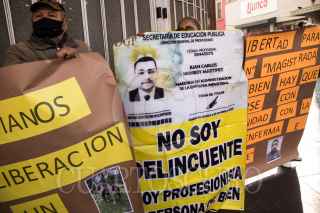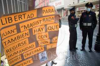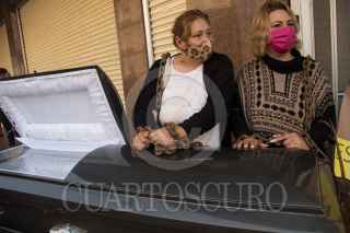 CIUDAD DE MÉXICO 14DICIEMBRE2020.- Patricia Martínez, madre de Juan Carlos Monroy, quién es acusado ijustamente de un homicidio, se encadeno a un ataúd en las inmediaciones del Zócalo Capitalino. Como parte de su protesta demanda la revisión el caso de su hijo. Este caso se encuentra en la Ciudad de Pachica Hidalgo. FOTO: VICTORIA VALTERRA/CUARTOSCURO.COM