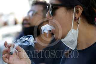 PUEBLA, PUEBLA, 14DICIEMBRE2020.- Grupos cannábicos de Puebla piden legalizar el consumo de marihuana, los participantes marcharon por calles del zócalo consumido esta droga. FOTO: MIREYA NOVO/CUARTOSCURO.COM