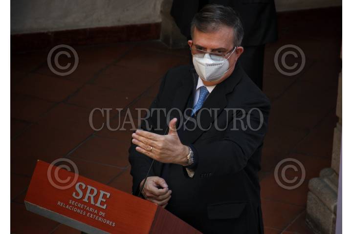 CIUDAD DE MÉXICO, 15DICIEMBRE2020.- Marcelo Ebrard Casaubon, secretario de Relaciones Exteriores presidió la develación de la placa de honor al Doctor Mario Molina que se llevó a cabo en el Instituto Matías Romero donde también se llevó a cabo el informe del Consejo técnico del conocimiento e innovación. FOTO: ANDREA MURCIA /CUARTOSCURO.COM
