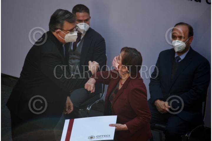CIUDAD DE MÉXICO, 15DICIEMBRE2020.- Marcelo Ebrard Casaubon, secretario de Relaciones Exteriores presidió la develación de la placa de honor al Doctor Mario Molina que se llevó a cabo en el Instituto Matías Romero donde también se llevó a cabo el informe del Consejo técnico del conocimiento e innovación. FOTO: ANDREA MURCIA /CUARTOSCURO.COM