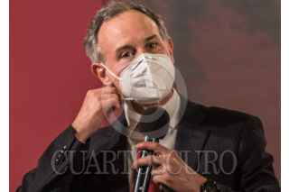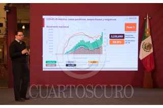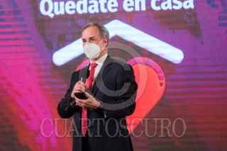 CIUDAD DE MÉXICO 14DICIEMBRE2020.- Hugo López Gatell, sub secretario de Salud, acompañado de varios especialistas, en la conferencia de prensa de las tardes, en el salón tesorería de Palacio Nacional. Los médicos hicieron un llamado a la gente a no hacer fiestas ni reuniones ya que posibles asintomáticos, son los que han prppagado los contagios. FOTO: VICTORIA VALTERRA/CUARTOSCURO.COM