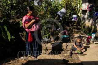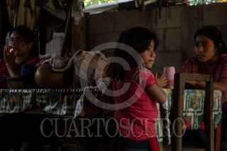ALDAMA, CHIAPAS, 16DICIEMBRE2020.- Debido al incremento de los ataques por grupos armados en el territorio de Santa Martha, Chenalhó, las mujeres de las comunidades de Tabac, Koko, Xuxchen, ahora son las encargadas de la economía familiar ya que por los constantes disparos a sus territorios ahora las familias ya no pueden trabajar sin miedo sus sembradios de maiz o cafe. Las mujeres ahora trabajan sin parar sus artesanías para venderlas con regularidad a los coyotes que llegan a la zona y ahora con el pretexto del Covid 19, pagan mucho menos cada una de las piezas artesanales. Las familias se sienten en constante persecución por grupos organizados frente a sus territorios. FOTO: ISABEL MATEOS /CUARTOSCURO.COM